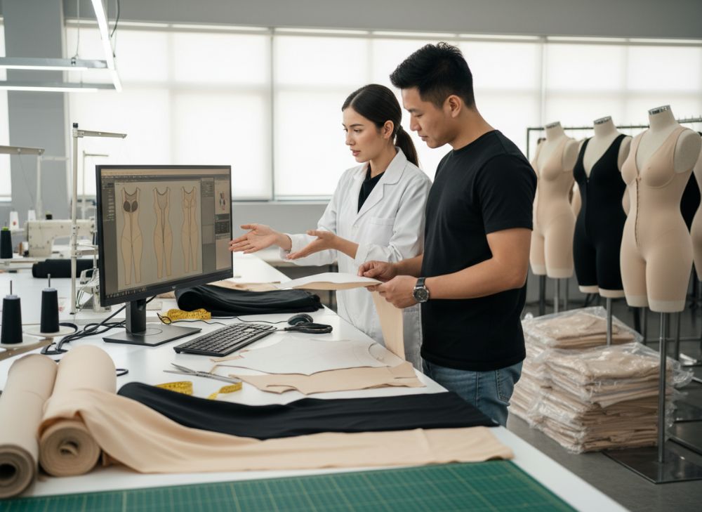 Konstruktionssupport umfasst detaillierte Schnittmuster für All-in-One-Stile, die Rückenfreiheit mit Ganzkörperkonturierung verbinden. Experten beraten zu Elastomer-Mischungen für optimale Dehnung. Dies minimiert Prototypfehler und optimiert Passform.