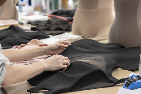 Sorgfältig ausgewählte Premium-Stoffe werden auf Faserdichte, Elastizität und Hautverträglichkeit geprüft, um höchste Shapewear-Qualität zu gewährleisten.