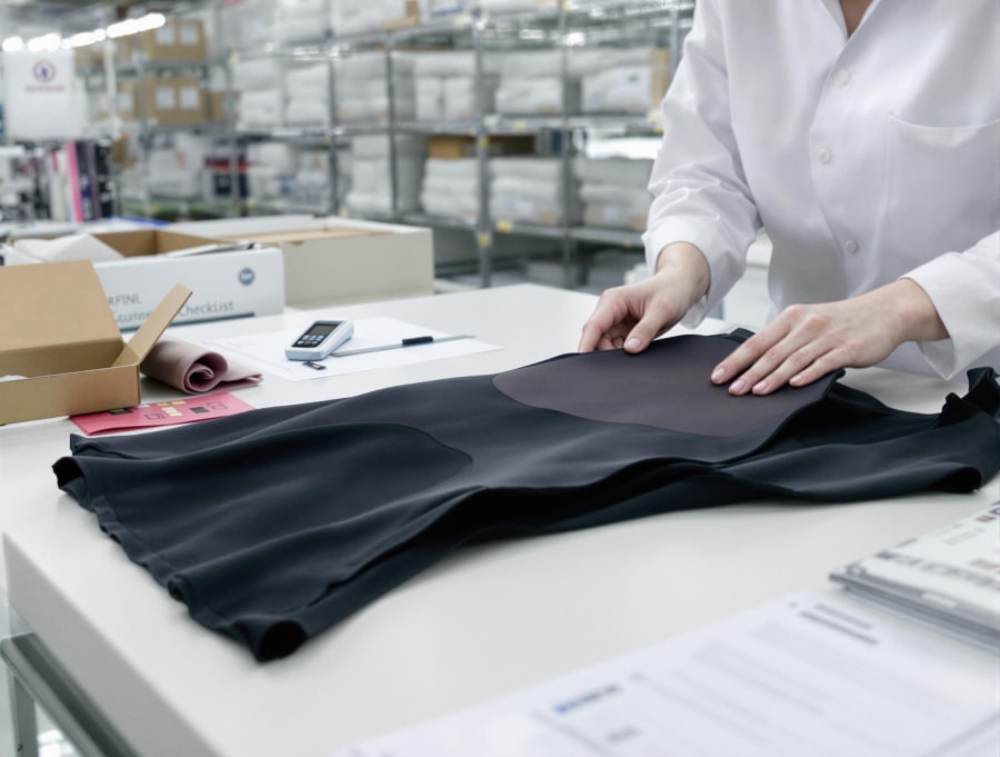 Sorgfältig ausgewählte Premium-Stoffe werden auf Faserdichte, Elastizität und Hautverträglichkeit geprüft, um höchste Shapewear-Qualität zu gewährleisten.